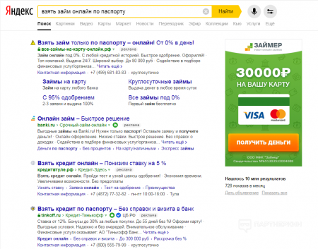 Контекстная реклама. Для работы с контекстной рекламой нужен солидный бюджет. В Яндексе высокая цена за клик, а с AdWords все ещё сложнее - недавно Google полностью запретил контекстную рекламу микрозаймов.