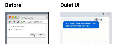 Второе обновление – сайты с низким рейтингом подписки будут «отмечены», а запросы на разрешение показа уведомлений будут переведены в «тихий режим». Это обновление мне кажется более реалистичным.