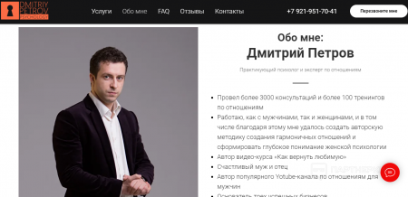 Другой эксперт по отношениям, Дмитрий Петров, также сделал личный бренд на советах по возврату бывших.