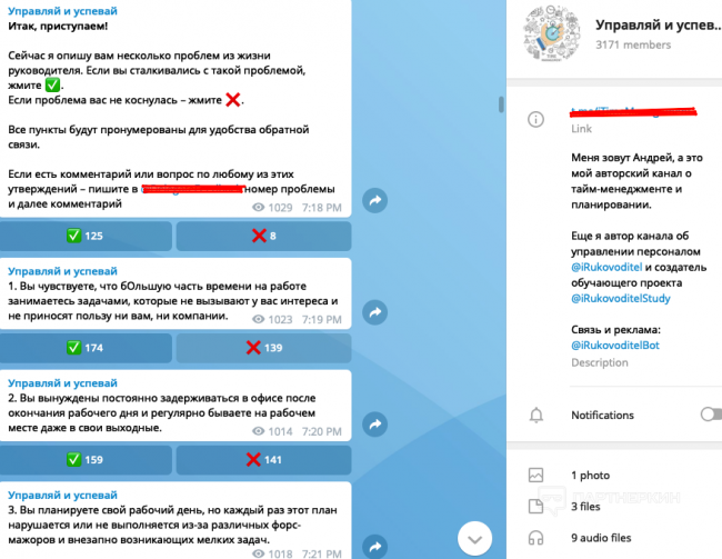 Когда мы надежно сохранили исходную версию материала, прошли обучение или хотя бы купили курс, пришло время создавать канал, на котором будет проходить вебинар. Копируем точь-в-точь название, аву, описание и первые посты, которые увидят посетители.