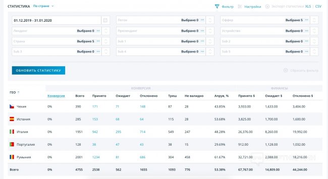 Средний аппрув по Румынии получился — 61%, по Италии — 48%, по Испании — 53%, по Чехии — 44%, а по неудачной для нас Португалии — 29%. К работе КЦ вопросов за этот период не было, кроме одного случая — кто-то перелил все капы по Италии и пару дней аппрув страдал, так как КЦ просто не справлялся.