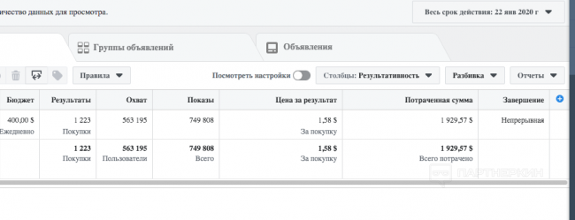 Источник трафика: Facebook (таргет)