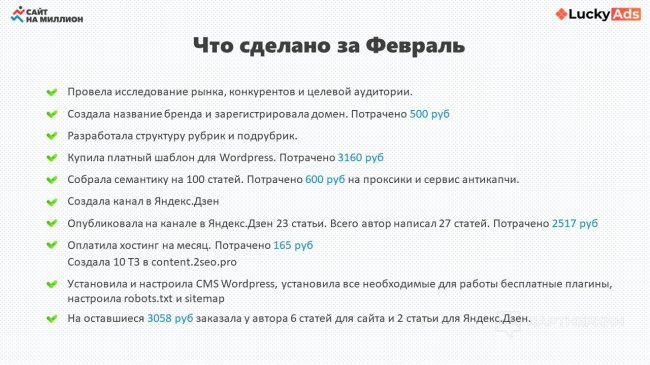Итоги февраля подвела во втором вебинаре. А еще показала, как собрать семантическое ядро для инфосайта, запись трансляции вы можете посмотреть прямо сейчас.