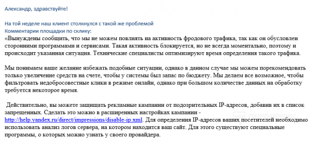 - Провел работу по жалобам в сервисы и партнеру по одному из направлений контекстной рекламы. Получил подтверждающий ответ: