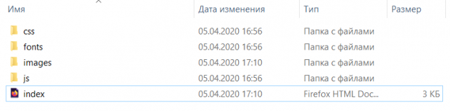 Ничего сложного там нет, все чётко на своих местах: стили, шрифты, скрипты, фотки и сама морда. Весит это добро в архиве примерно 1 мб.
