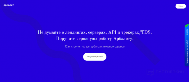 В этом сервисе вы можете быстро и без ограничений скачивать лендинги и прокладки, получать уведомления об аппрувах, отклонениях и лидах, а также подключаться к любой партнерке с указанием всего лишь нескольких параметров. В Арбалете есть встроенный визуальный редактор, позволяющий изменить ссылки, картинки, текст в скаченном сайте, и редактор кода.