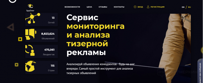 SpyOver - сервис для анализа и мониторинга тизерной рекламы.