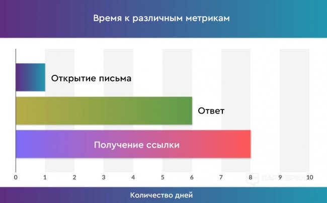 - «Быстрые» результаты важны. В среднем достаточно 8 дней, чтобы письмо сконвертило в обратную ссылку.