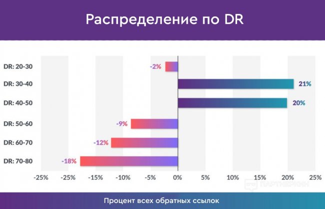 В основном мы ориентировались на сайты с рейтингом домена (DR) в районе 20-80%. Для доменов с DR более 80% мы использовали особый подход.