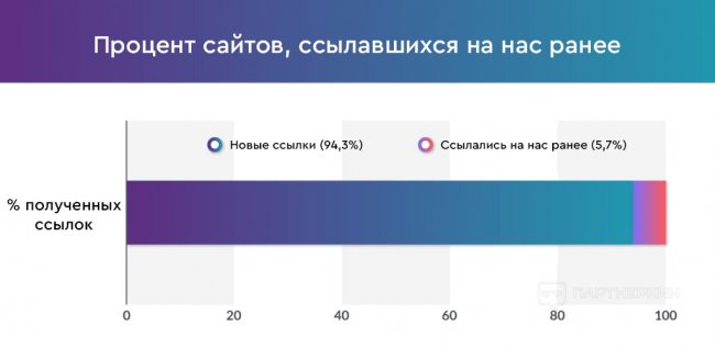 - 5,7% обратных ссылок пришли с сайтов, ссылавшихся на нас ранее.