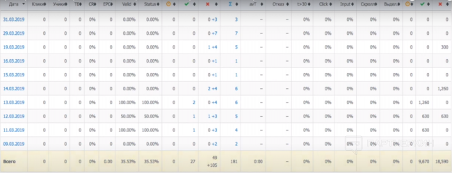 Для чистоты эксперимента он решил параллельно попробовать другую партнерку. Начал он лить 9 марта, а завершил кампанию 11 апреля. В этом случае в систему поступило 181 лида, из них были подтверждены лишь 27. Другими словами, вместе с нецелевыми заявками апрув составил 15%. Выплаты также составляли 300 рублей за заказ.