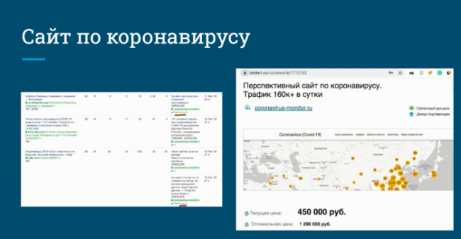 Еще один актуальный пример — сайт по коронавирусу. Ребята быстро собрали площадку и он уже в продаже за 1 300 000 рублей. О сайте написали: vc, вести.ру, википедия и многие другие. Первоначально был незначительный посев, а дальше новостные издания стали цитировать друг друга. В любой нише можно создавать социально значимые сайты и получать на них ссылки.