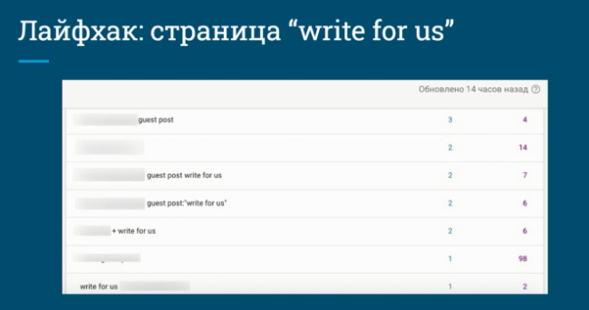 Полезный лайфхак — страница на сайте «write for us». Благодаря ей можно увидеть с какими предложениями идут к нам конкуренты, думая, что мы размещаем гостевые посты, и как они торгуются. Получаем контакты аутричеров и актуальные сайты доноров, которые размещают гостевые посты в нашей нише прямо сейчас. Это очень круто.