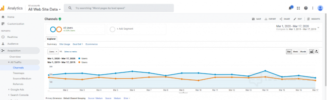 Это анализ ребят из команды Dealer On, которая занимается интернет продвижением в автомобильном бизнесе. Они задались вопросом изменения органического трафика и необходимостью SEO в краткосрочном периоде. Ниже мы видим снижение числа новых пользователей на 47% (2 088 в 2019 году и 895 в 2020 году):
