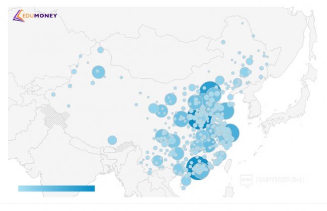 Ниже карта похожа на статистику распространения коронавируса, но на самом деле она показывает в каких городах Китая студенты интересуются заказом письменных работ на английском языке: