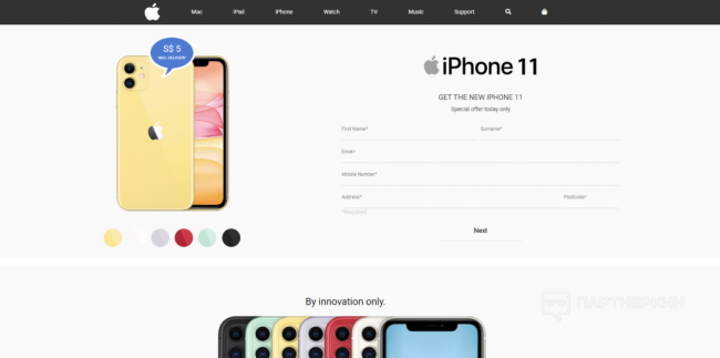 Этот лендинг по нашим правилам не проходит. Поняли почему? Потому что он имитирует сайт Apple!