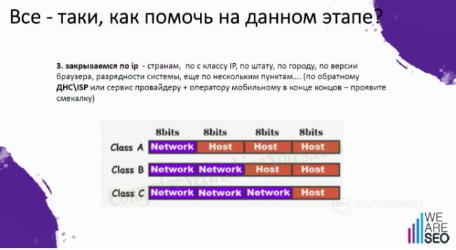 3. Закрываемся по IP. Если у вас площадка под определенное гео, например США, то смело обрезайте трафик из России, Казахстана или Эстонии. Можно ориентироваться по классу IP — рубим С-класс. Проявите смекалку. Детализируйте информацию по городу, области, штату, версии браузера, разрядности системы, обратному ДНС или интернет-сервису провайдера (ISP) и мобильному оператору.