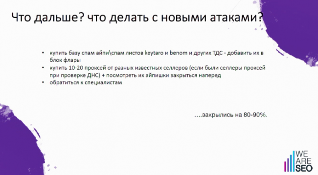 С помощью чек-листа можно определять целые паттерны действий и вовремя закрываться от атак конкурентов. Если атака идет в течение месяца, то у ваших недоброжелателей скоро закончатся vpn или прокси и вы защититесь на 80%.