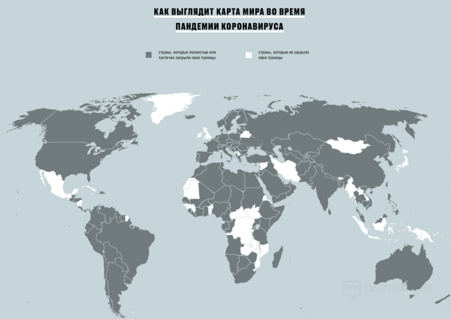 Первое, что приходит на ум — travel-сегмент. Здесь достаточно взглянуть на карту стран с закрытыми границами, чтобы все сразу стало понятно. Люди сидят дома, отменяют все запланированные поездки, денег в нише нет — арбитражнику тут делать нечего.