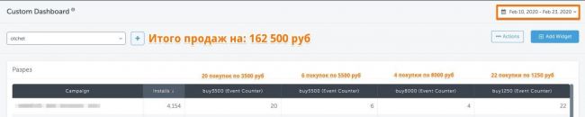 Так как тесты проходили в закрытом режиме, без всяких интеграций с Gambling.pro, то сверялся и смотрел за результатом я в апсфлаере. Скриншот результата с 10 по 23 февраля прикладываю ниже: