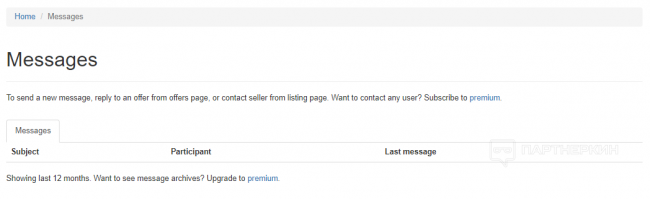 Переходим во вкладку «Messages». Здесь будут храниться все переписки с продавцами и потенциальными покупателями.