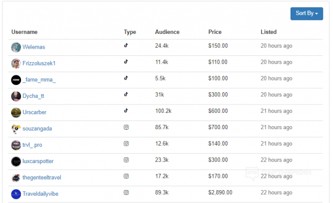 На данный момент на платформе размещено более 2 500 аккаунтов/каналов с общим числом подписчиков в размере 213 915 978 человек. Стоимость всех аккаунтов составляет $8 762 109.