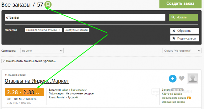 Отзывы заказывают в основном на такие ресурсы, как Яндекс.Маркет, Яндекс.Справочник, Google Maps, Google Play, Otzovik и т. д. Цель накрутки – продать больше товара и поднять компанию в поиске. Сервисов, где можно разместить подобные заказы есть много. Для примера возьмем биржу Advego, вводим в поиске «отзывы» и видим, что доступно 57 заказов, а за некоторые задания готовы платить даже 2.88$. За несколько предложений уникального текста, который можно написать за 10 минут, совсем неплохо. И неудивительно, что многие там штампуют отзывы целыми днями: