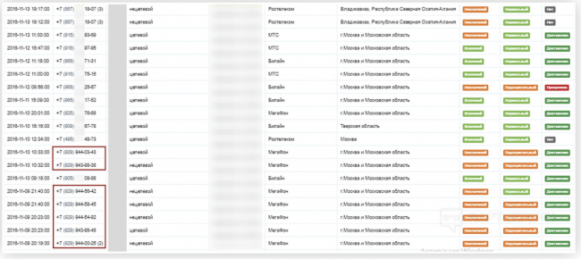 Данные базы формируются несколькими способами и различаются по степени «сомнительности». Мы постоянно собираем телефонные номера исполнителей на различных площадках, типа YouDo, Workzilla, Weblancer. Данные номера являются основой базы. Если в процессе работы мы видим пересечение звонков от того или иного веб-мастера с номерами из этой базы, это говорит о 100%-ном факте фрода. В большинстве случаев такие веб-мастера попадают в бан, а все номера телефонов, с которых были совершены их звонки, попадают в базу сомнительных номеров.