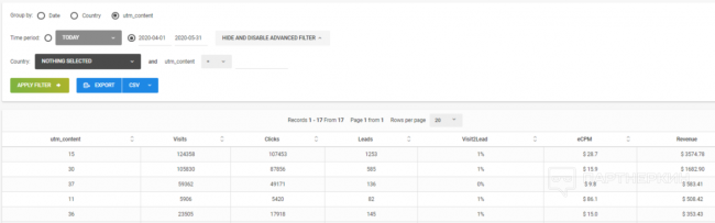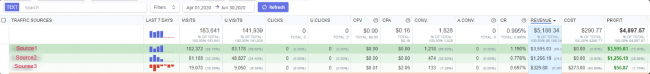 К сожалению, в админке пп нельзя разрезать статистику по конкретной смартлинке, но для работы/оптимизации оно и не нужно. Так что ловите скрин в разрезе по id sourсe, который мы передавали в ПП.