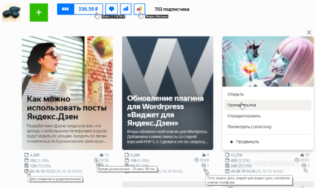 Установите расширение «Продзен» для Chrome и Firefox, чтобы проверять индексацию каналов и просматривать расширенную статистику. Пользоваться им можно только после авторизации в редакторе Дзена.