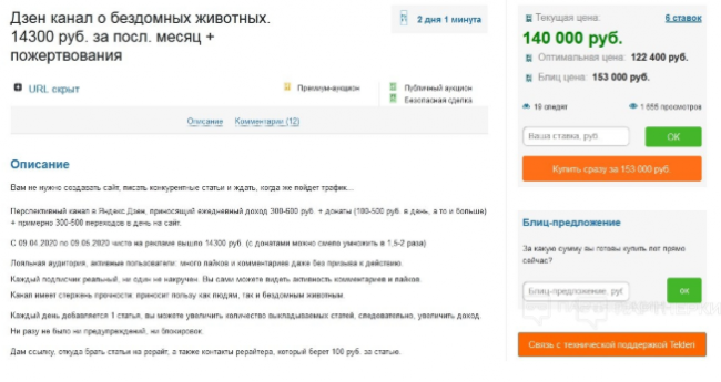 Купить перспективный канал на Телдери за выгодную цену очень сложно, там много активных перекупщиков, которые часто закрывают аукционы досрочно. Все каналы я покупал через группы ВКонтакте из моего списка. Сделки проводил через внутренних гарантов и сразу выставлял на Телдери. Некоторые лоты уходили с первого раза, другие приходилось публиковать 2-3 раза.