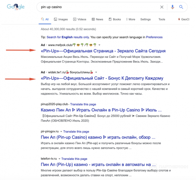 В основном мы работали с нашими партнерами из Pin Up по таким гео как Россия, Украина, Казахстан, Азербайджан. Реклама запускалась только на брендовые запросы - конверсия и качество у такого типа трафика высокие, что позволило с легкостью пройти KPI. Немного повлияло отсутствие спортивных событий в период пандемии, поэтому рассчитывали только на гембловый трафик.