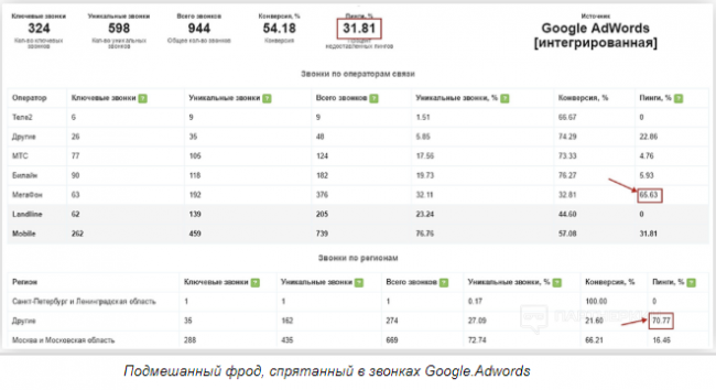 Первый характерен для крупных компаний, где KPI служит количество сделок. Из-за ошибок в учете продаж рекламодатель не отражает реальную картину роли звонков. Необходимо проводить собственный аудит.