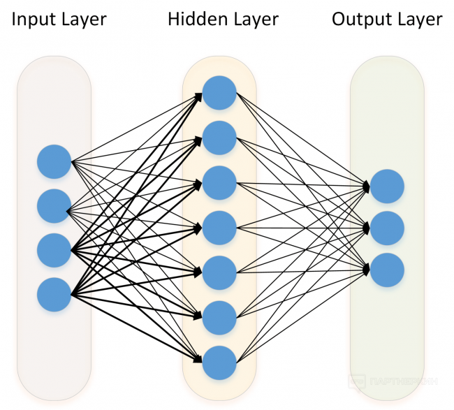 Примерная схема такой сети с входными и выходными данными изображена на иллюстрации: