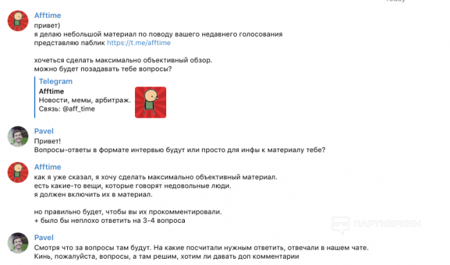 А еще он выложил эти пруфы прямо в чат канала Affbank и попросил пояснить за биржи. Не берусь судить профессиональность (читай: эмоциональность) ответа Павла, но считаю, что лучшее в этой дискуссии — это ответ Ульяны, бывшей главы Affbank. Прочитать всю переписку и узнать аргументы сторон можно здесь.