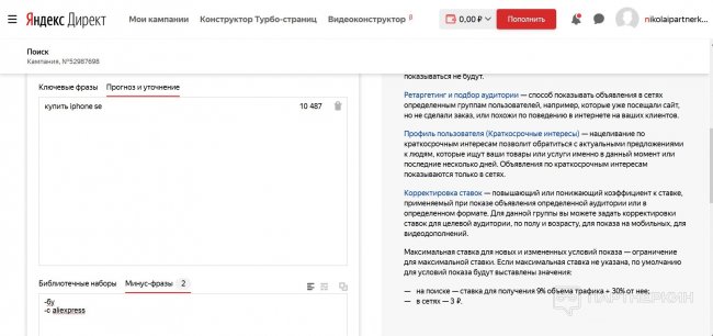 Из описания выше вытекает логичный вывод: нельзя копировать поисковые кампании в РСЯ и просто менять бюджет. Аналогичная ситуация и с ключевыми фразами — они должны подбираться индивидуально для каждой кампании с учётом особенностей площадок, на которых откручиваются объявления.