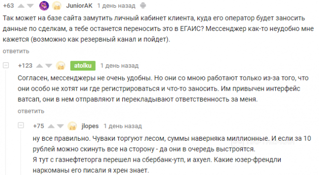 Atolku (своего настоящего имени он не раскрывает), который был знаком с ЛесЕГАИС, предложил Сергею свою помощь — он пообещал приехать к нему после новогодних каникул и показать, как работать с системой. Однако по приезду он сразу же получил от друга другое предложение — вести работу с ЛесЕГАИС за 5 000 рублей в месяц. Сергей не захотел разбираться в тонкостях системы и не был уверен, что его бухгалтер сможет осилить эту задачу. Автор согласился — бухгалтер каждый день отправляет по мессенджеру данные и он за 5-10 минут вносит их в систему.
