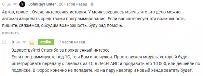 Через месяц появился второй клиент. Сергей рассказал своему конкуренту, как он ведет дела в ЛесЕГАИС и тот захотел также передать эту задачу на аутсорс. Atolku согласился, на этот раз запросив в месяц 7 500 рублей, так как приходилось иметь дела с юридическими лицами. Кроме того, было составлено соглашение о неразглашении. На ведение дел двух клиентов уходило около 30 минут в день.