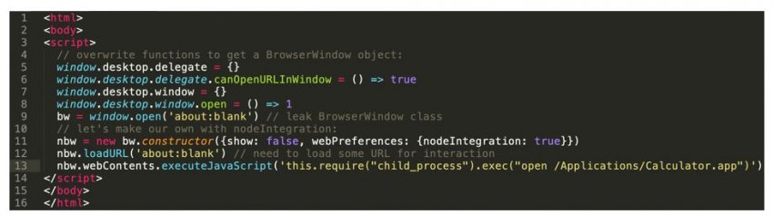 В сущности, с помощью обнаруженных багов злоумышленник мог осуществить HTML-инъекцию, выполнение произвольного кода, а также XSS-атаку из-за проблемы на files.slack.com. HTML/jаvascript PoC-эксплоит, опубликованный Вигерисом, наглядно показывает, как легко запустить через Slack приложение калькулятора или что-либо другое.