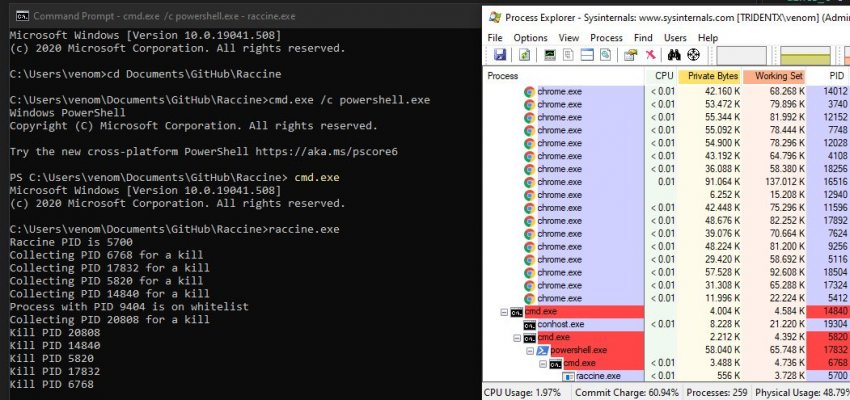 Журналисты Bleeping Computer обратили внимание на интересную утилиту, недавно созданную ИБ-экспертом Флорианом Ротом (Florian Roth). Разработка получила название Raccine (Ransomware vaccine, то есть «Вакцина от вымогателей») и она автоматически ликвидирует любые процессы, пытающиеся удалить теневые копии в Windows с помощью vssadmin.exe.