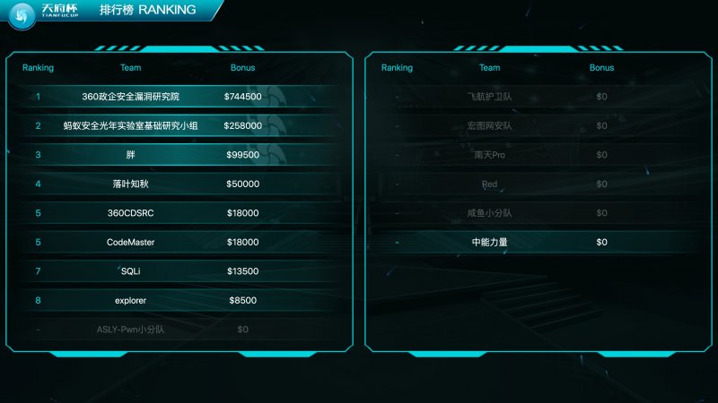 Как и в прошлом году, с большим отрывом победила команда специалистов китайского технологического гиганта Qihoo 360 (360 Enterprise Security and Government and (ESG) Vulnerability Research Institute, она же Team 360Vulcan). Победители забрали домой 744 500 долларов, а это почти и две трети всего призового фонда мероприятия, который в этом году составлял 1 210 000 долларов.