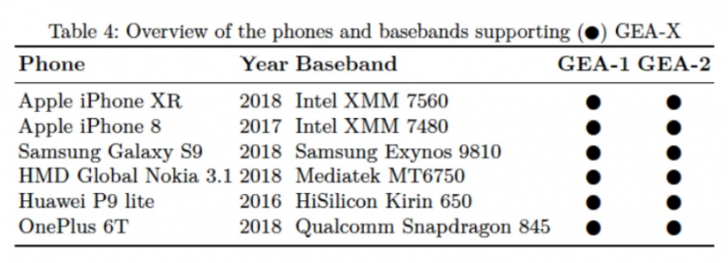 В качестве доказательства этих слов эксперты протестировали несколько современных смартфонов на базе Android и iOS, чтобы понять, могут ли они поддерживать старые и уязвимые алгоритмы. Увы, эксперимент показал, что GEA-1 и GEA-2 все еще поддерживаются. Также стоит добавить, что многие IoT-устройства тоже по-прежнему используют 2G-модемы и тоже могут быть уязвимы.