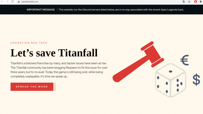 Сообщения призывали спасти другую игру этой же компании — Titanfall, и вели на сайт SaveTitanfall, запущенный ранее в этом году. На этом ресурсе поклонники игры просят разработчиков Respawn вмешаться в происходящее и разобраться с хакерами, из-за которых Titanfall уже несколько лет страдает от постоянных DDoS-атак.