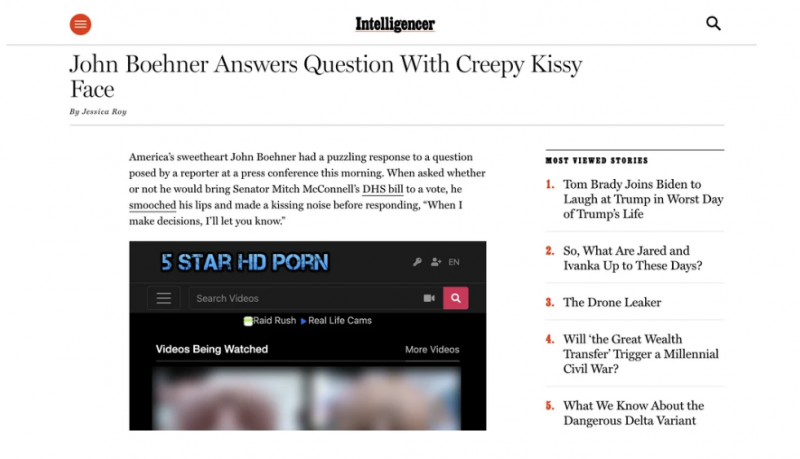 Первым на эту проблему обратило внимание издание Vice Motherboard. Журналисты рассказывают, что контент для взрослых появился на сайтах новостей после того, как домен Vid[.]me приобрел порносайт 5 Star Porn HD и для домена включили перенаправление на этот самый порносайт. В итоге на страницах изданий, куда ранее были встроены ролики с vid[.]me появилось жесткое порно.