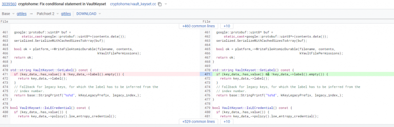Строка кода в Cryptohome VaultKeyset, где хранятся ключи шифрования пользователей, должна была выглядеть так: if (key_data_.has_value() && !key_data_->label().empty()) {. Но вместо «&&» в коде использовался только один амперсанд.