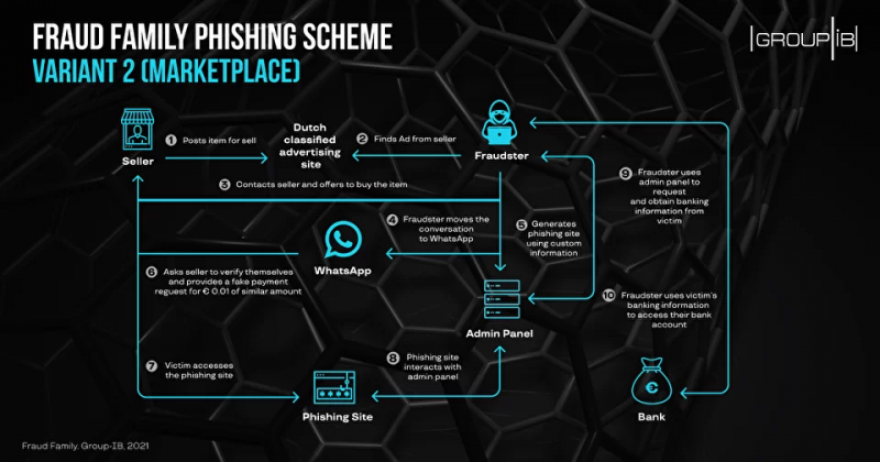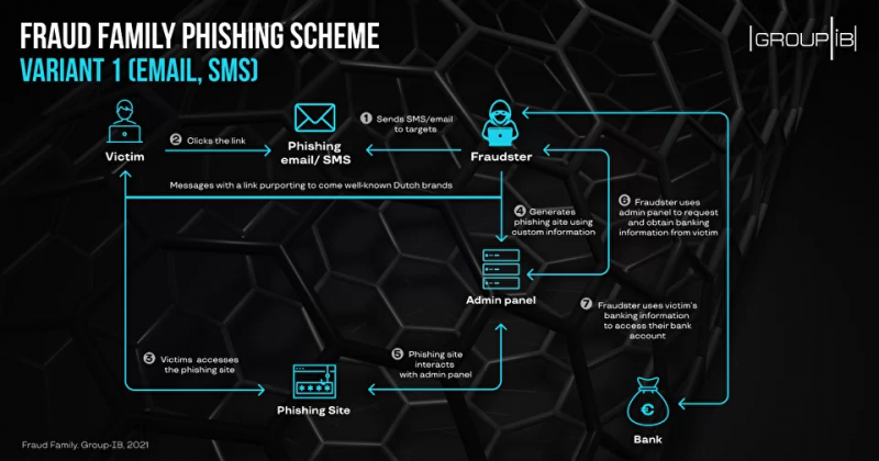 Выйти на след Fraud Family правоохранителям помогли специалисты Group-IB Threat Intelligence. С 2020 года ИБ-компания фиксировала масштабные фишинговые атаки на жителей Нидерландов и Бельгии. Фальшивые страницы были замаскированы под ресурсы крупных европейских банков — с их помощью мошенники обманом похищали данные банковских карт. Типичная атака начиналась с сообщения в WhatsApp или SMS (якобы от банка) с просьбой перейти по ссылке — в результате жертва попадала на фишинговые ресурсы.