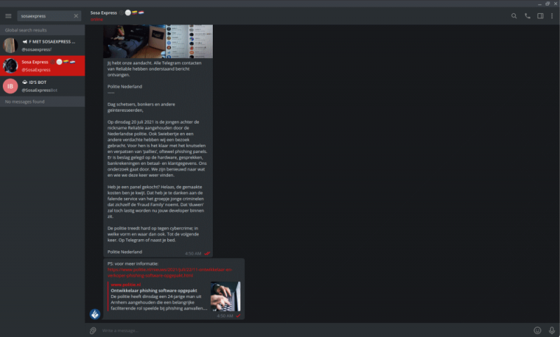Интересно, что после задержания подозреваемых голландская полиция сообщила всем участникам Telegram-каналов Fraud Family о случившемся, чтобы предостеречь их от будущих атак на голландские объекты.