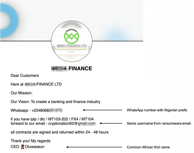 Еще в начале беседы специалисты провели беглое исследование открытых источников и пришли к выводу, что тот может быть нигерийцем, так как нашли его данные на сайте, посвященном торговле найрой (нигерийская валюта).