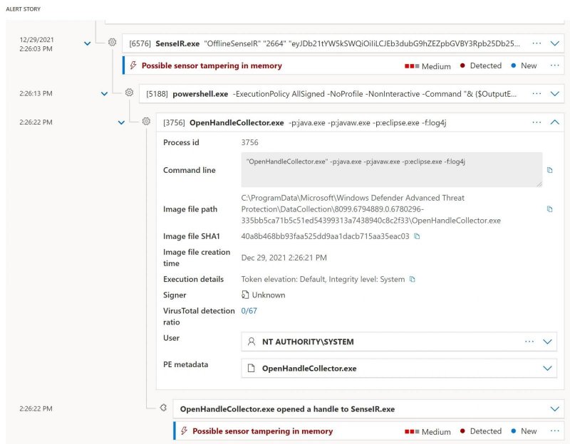 СМИ пишут, что Microsoft Defender for Endpoint показывает ложные предупреждения о некоем «взломе датчика», которые связаны с недавно развернутым сканером Microsoft 365 Defender для процессов Log4j.