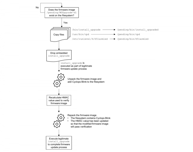 Документ гласит, что впервые Cyclops Blink был использован в июне 2019 года, и в первую очередь атаковал брандмауэры WatchGuard Firebox, хотя имел возможности для атак на другие типы сетевого оборудования. Cyclops Blink описывается как «профессионально разработанная» малварь, которая использует модульную структуру, позволяя хакерам разворачивать на зараженных девайсах полезную нагрузку второго этапа.